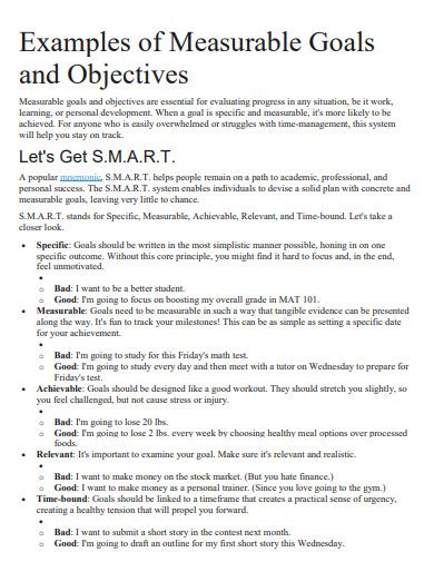 Read Online sample of managers measurable goal Hardcover ManyBooks